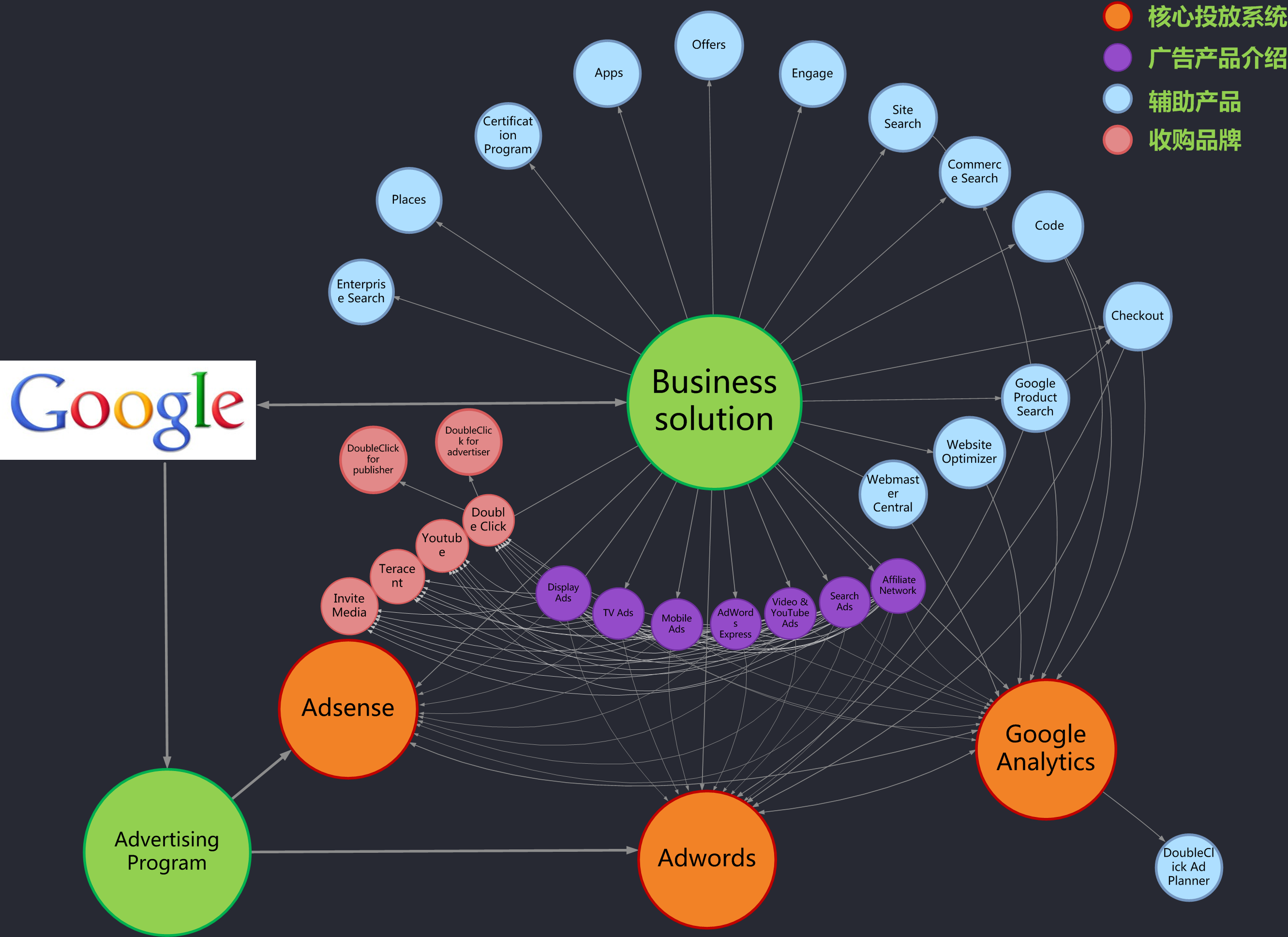 2、以AdWords、AdSense、GA为重点的投放产品体系;