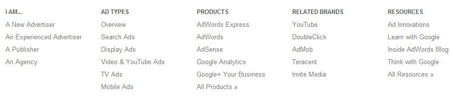 提起google 相信没有人会感到陌生,很多人每天都在使用着他丰富的用户产品与服务。作为一家庞大的互联网巨头,在用户产品的背后google也有着复杂而强劲的商业产品体系。单以广告而论,Google一年的收入就超过300亿美元。那么,google如何组织他的商业产品,背后有着怎样的逻辑就成了一个值得分析与思考的话题。近期笔者对google的商业体系进行了一次集中的梳理,尝试从中发现商业信息组织中的一些原则与方法。由于商业体系过于复杂,这里仅从线上系统的信息结构与引导角度尝试解读。